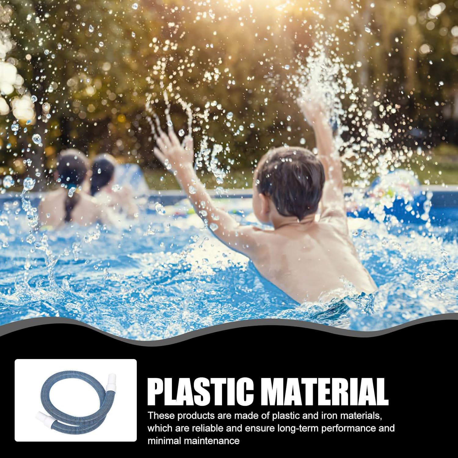 Package Include 1 x drainage 2 x connectors 1 x hoop 1 x tape Features -Product Info:Drain pipe joints -Size:160.00X5.00X5.00cm/62.88X1.97X1.97in -Color:Blue -Material:Plastic, iron -Constructed from plastic and iron materials, these products are built to last and require minimal maintenance. -The drainage system prevents water accumulation around the pool, a clean and environment Pool Replacement Hose. -The drainage system's compact design ensures that it does not take up excessive space or detract from the pool's appearance pool hose coupling. -These drainage and fittings are specifically designed for managing water flows in above-ground swimming pools pool pump accessories. -With connectors and hoop included, installation is easy and requires no special tools above ground pool hose.Goods Descriptionpool fittings Wanna buy a practical swimming pool drain hose? Here comes our Drainage for you to choose.pool hose replacement Simple structure design helps make it convenient to use.pool hose Made of plastic and iron material, convenient and lasting for you to use